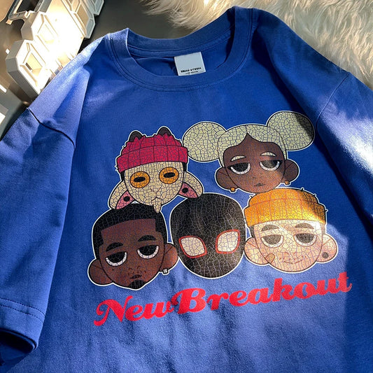 Casual Loose Cartoon Animation Printed Short-sleeved Y2k Harajuku High Street