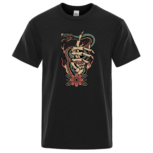 Poisonous Snake Graphic Oversized Cotton Tee Streetwear for Men