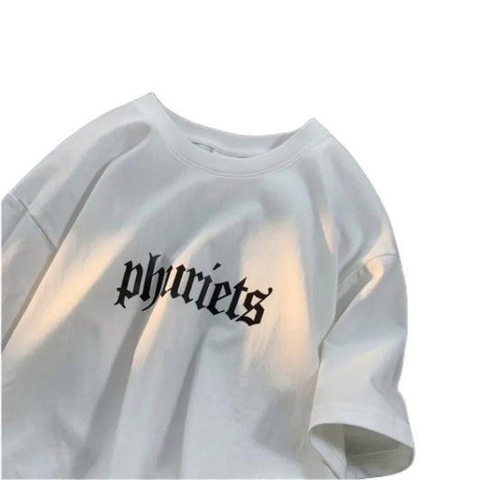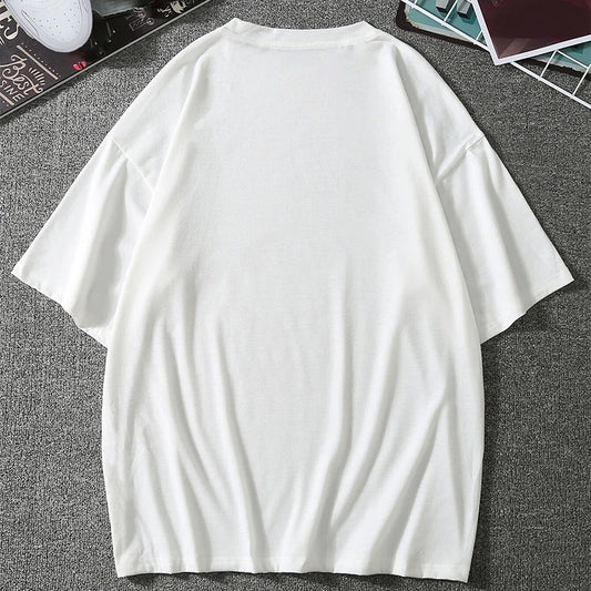 Men's Fashion Oversized White Letter Tee Casual Streetwear