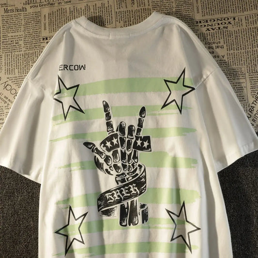 Graphic Streetwear Hip Hop Goth Summer Y2K Print Harajuku Short Sleeve Cotton