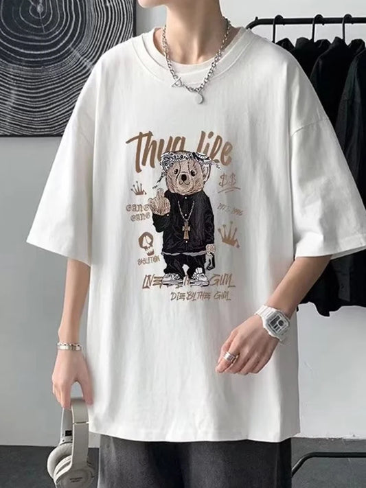 FUNNY BEAR Tee Men Y2K Summer Vibes Hip Hop Style