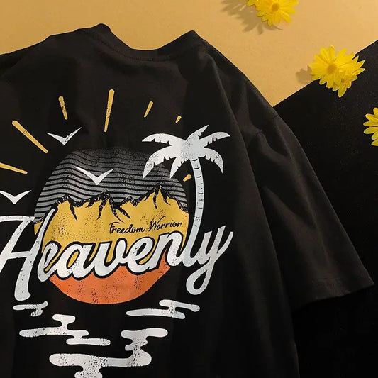 American Style Retro Summer Island Printed T-shirt for Men