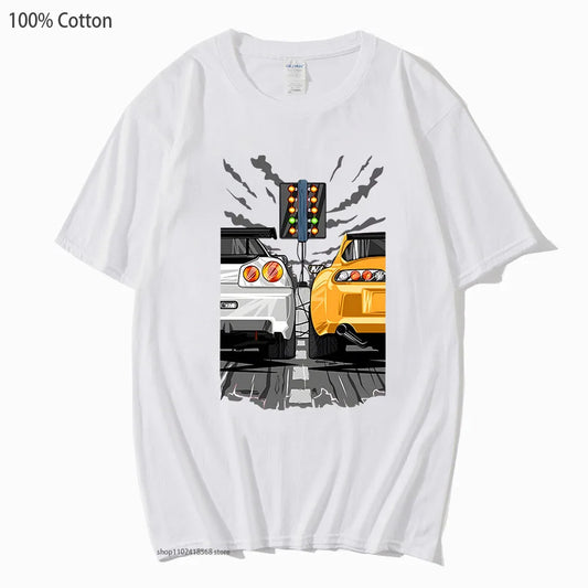 Cartoon Car T-Shirts Cool Print Men's Casual Summer Tops
