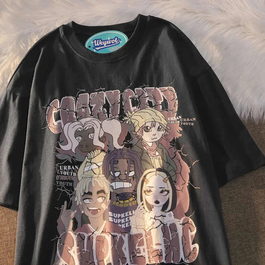 American Vintage Harajuku Letter Printing Graphic Fashion Casual Y2K
