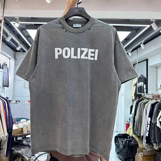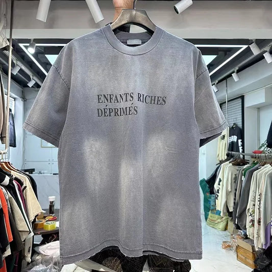 25SS Vintage Grey Saint T-Shirt Streetwear Character Logo Print Cotton
