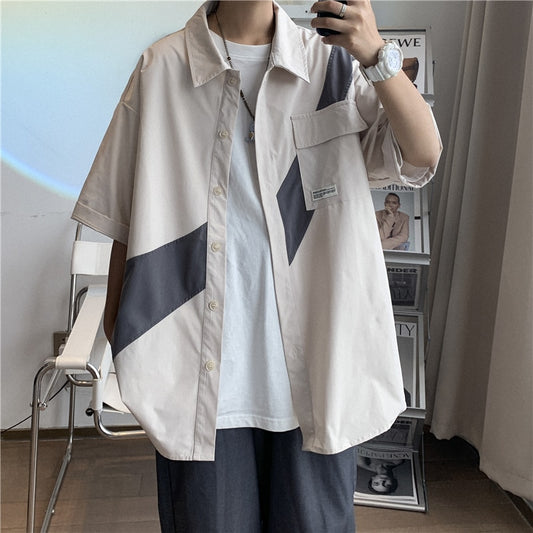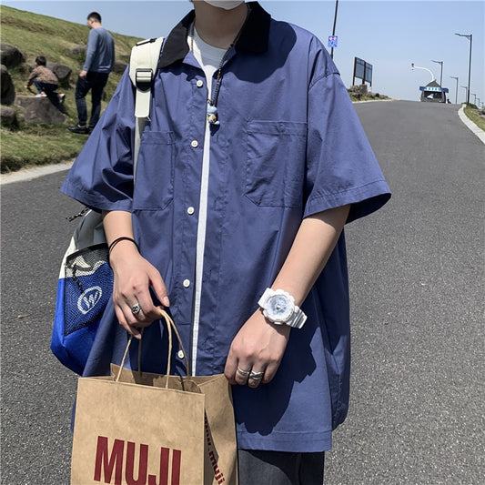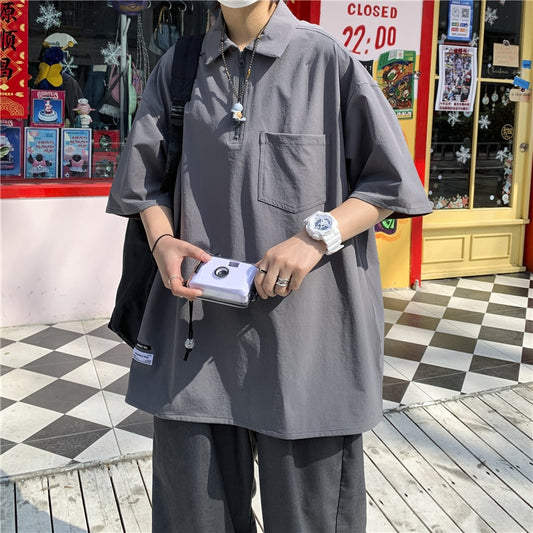 Men's Polyeseter Solid Color Short Sleeve Casual Shirt For Summer