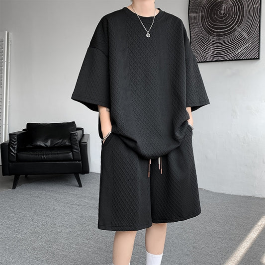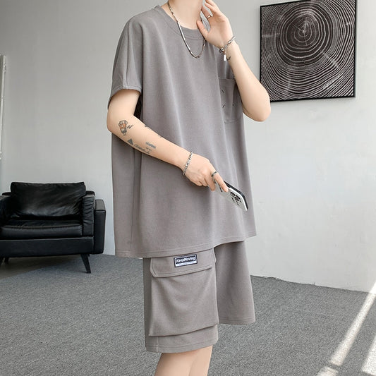 Men's Loose Short Sleeve T-shirt and Shorts Suit Solid Color, Large Size Summer Set