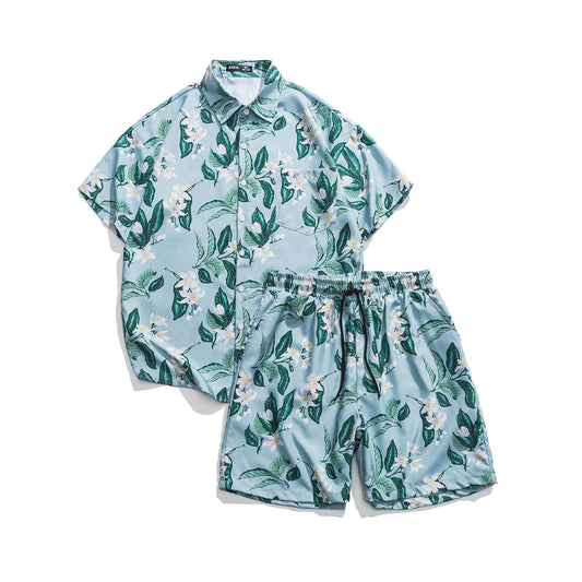 Men Two Piece Set Hawaii Casual Summer Floral Print Shirt Suit Large Size Beach Clothing
