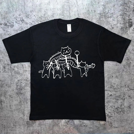 American Ins Retro Hand-Painted Cat Print Cotton T-shirt