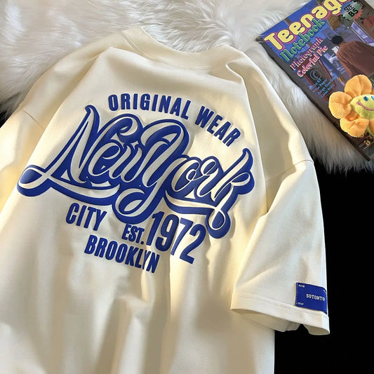Yao Fashion Vintage Movie Poster Graphic Print Loose Cotton Tee Men