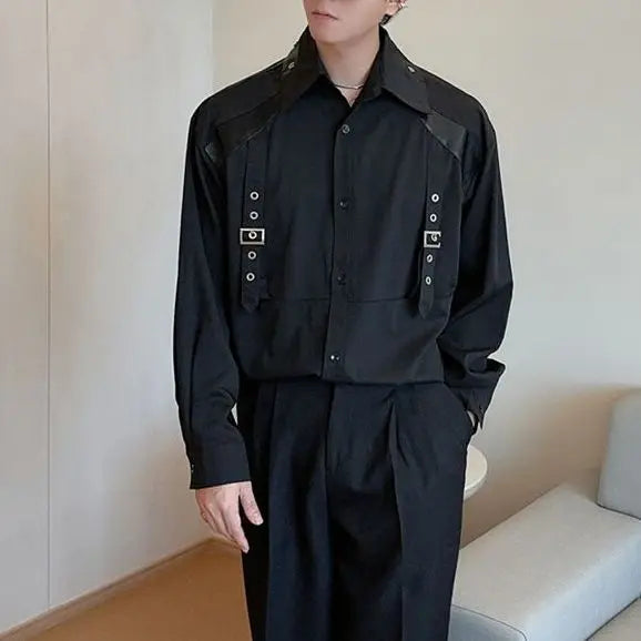Mens Patchwork Shirt Long Sleeve Unique Design Casual Button Up