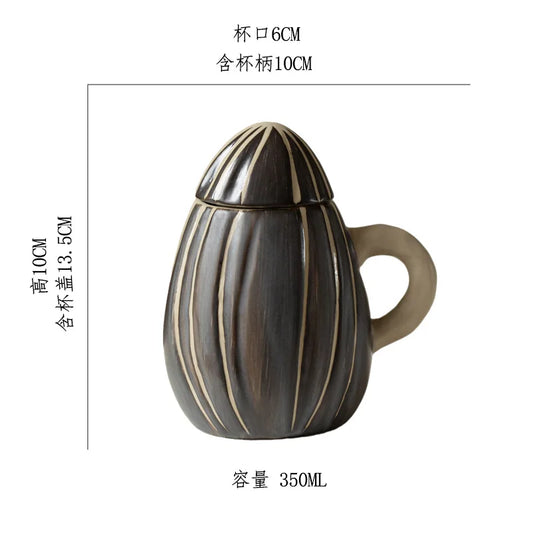 Melon Seed Mug with Hand-Carved Design and Ceramic Lid