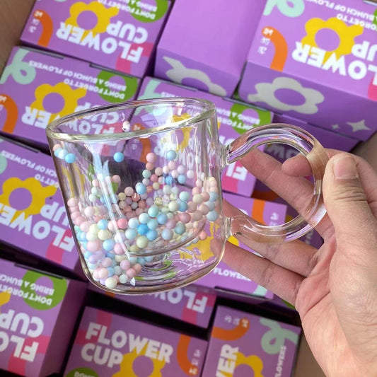Double Layer Heat-resistant Glass Cup Creative Love Rainbow Design
