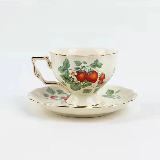 French Vintage Coffee Set: Strawberry Ceramic Cup