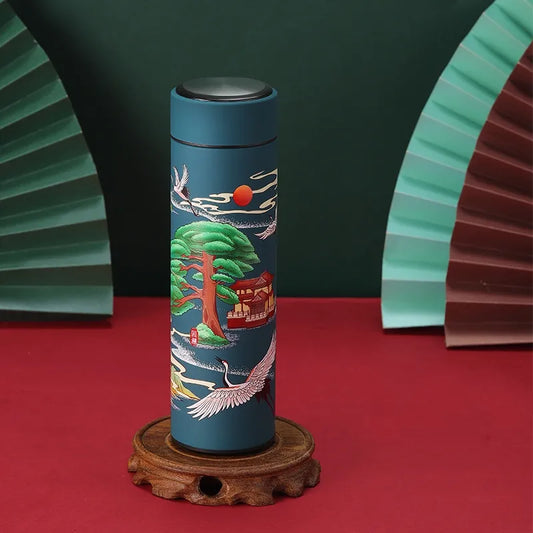 Lion & Dragon Design Smart Thermos Cup: 304 Stainless Steel and China-Chic Style (Red)