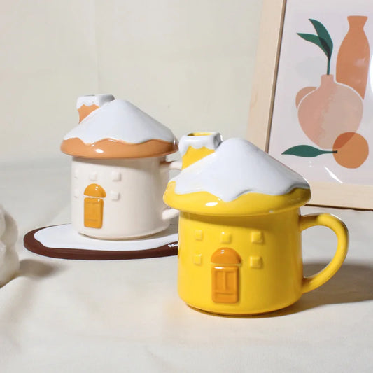 ingerbread House Ceramic Coffee Mug with Lid Cute Kitchen Drinkware