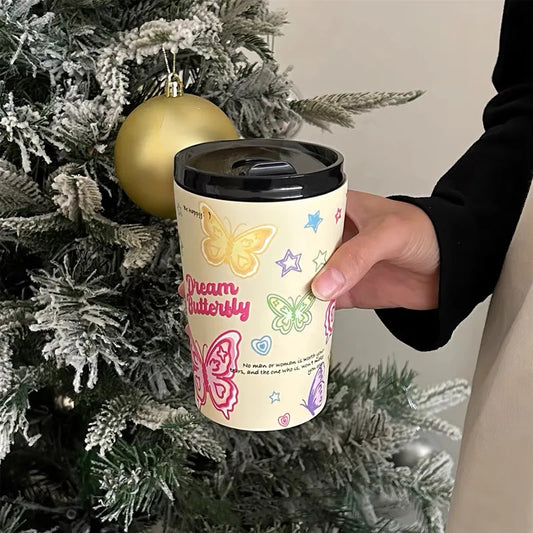 Vintage Ceramic Hand-Painted Butterfly Mug 380ml Heat-Resistant Cup