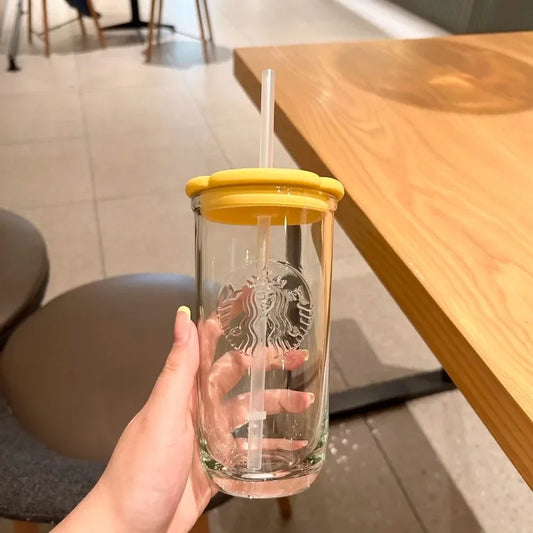 Square Glass Cup with Lid and Straw Heat Resistant for Juice