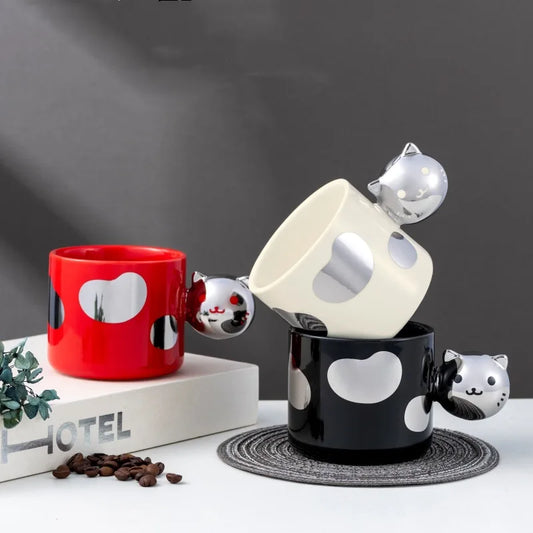 1 Piece 300ml Creative 3D Cartoon Cat Spoon Christmas Style Cute Mug Ceramic Goblet Coffee Milk Cup