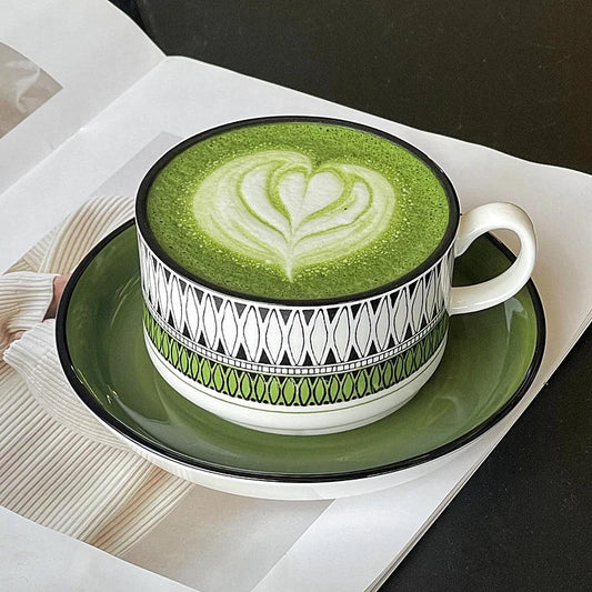 Green Medieval Coffee Cup and Plate Set Vintage Ceramic Tea Cup and Plate
