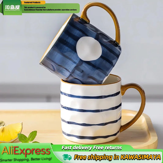 Japanese Vintage Ceramic Mug, High-Capacity Coffee Tea Cups 350ml