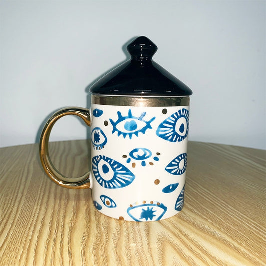 Mug Hand-Painted Eyes Ceramic Coffee Cup with Tableware Set Plate