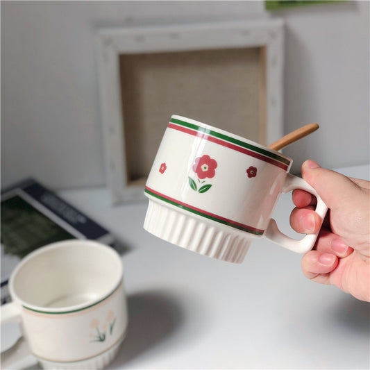 Tulip Ceramic Mug Vintage Milk Coffee Cup Mugs Girl Heart Flower