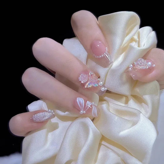 Press On Nails Glossy Rhinestone Star Designs y2k Girls Charms Manicure