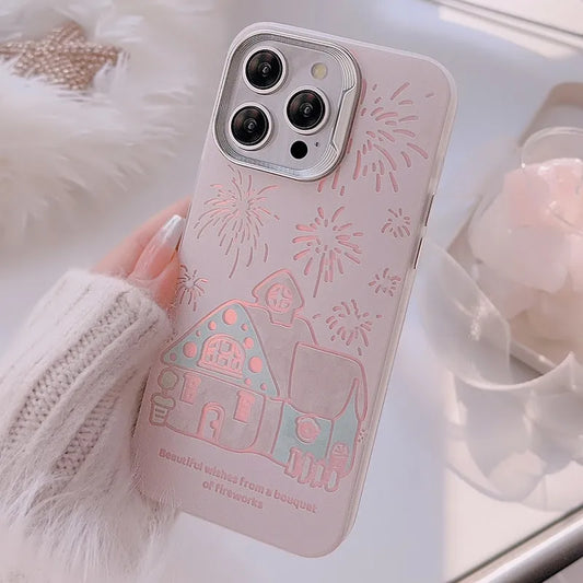 Happy New Year Castle Fireworks Pink Women Girl Laser Relif 3D Shockproof Phone Case iPhone