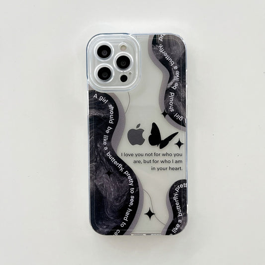 Stand Holder Soft Cover Ins Black Butterfly Bracket Case for iPhone Cute Girl Women