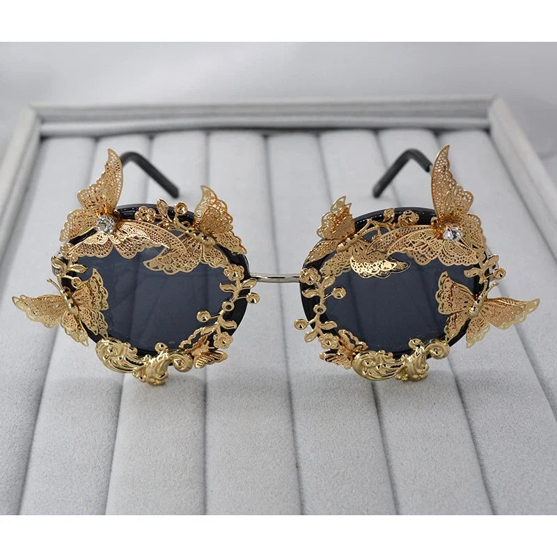 Luxury Round Baroque Sunglasses Metal Flower Women's Eyewear
