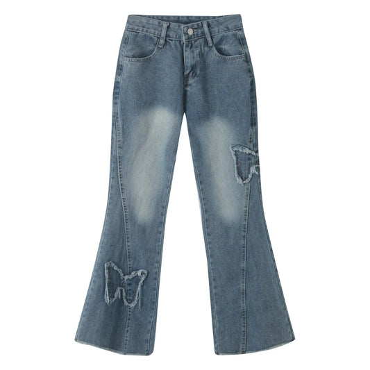 Womens Butterfly Print Jeans High Waist Straight Denim