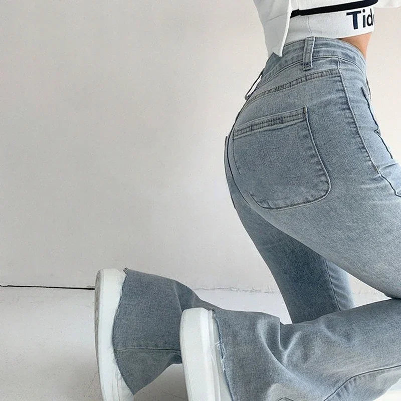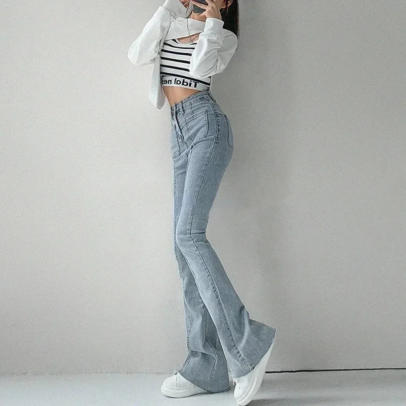 Vintage Bell Bottom Jeans Women High Stretch Flare Denim Pants
