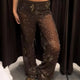 Women's High Waist Beaded Jeans Slim Vintage Straight Denim Pants