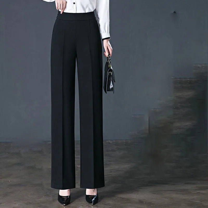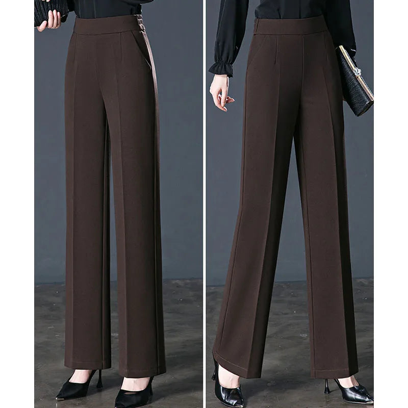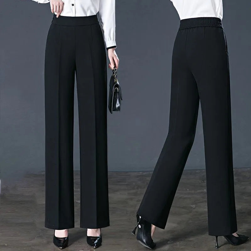 Womens High Waist Pants Elastic Straight Leg Casual Trousers Pockets