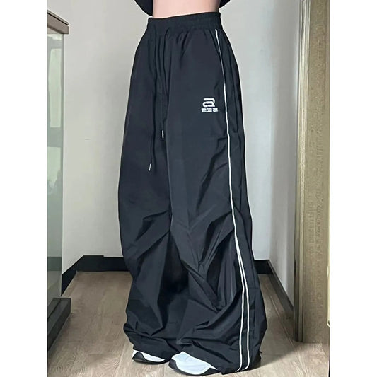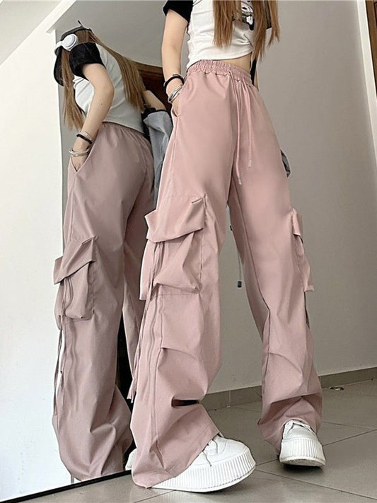 Fashionable Parachute Cargo Pants Vintage Jogging Trousers for Women