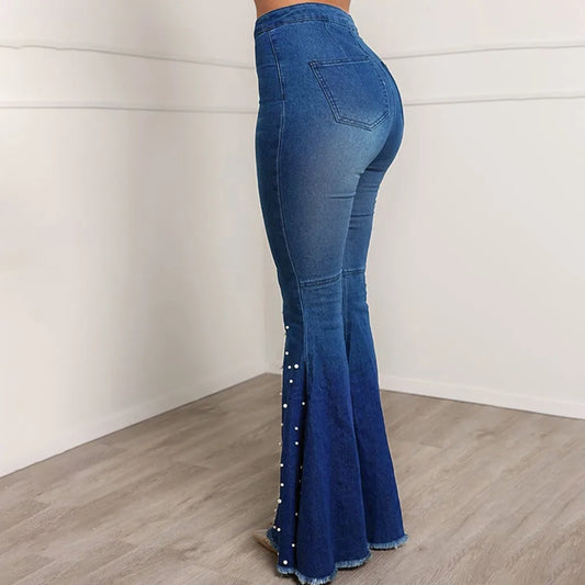 Elegant Embroidered Flared Jeans Women's High Waist Spring Pants