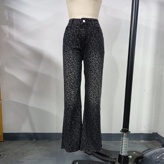 Y2K Leopard Print Pants Women's High Waist Straight Leg Trousers