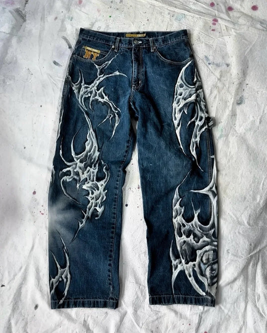 Women's Retro Blade Print Jeans Harajuku Hip-Hop Wide-Leg Pants