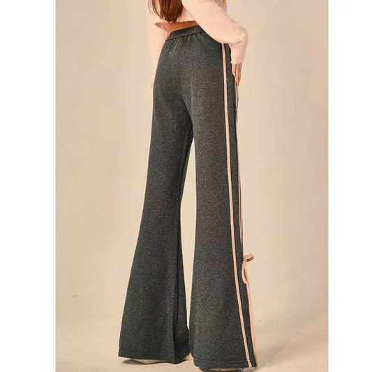 Women's Wide-Leg Flare Pants Stripe High Waist Lace-Up Trousers