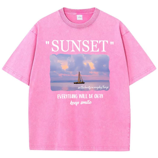 Womens Everything Will Be Okay Tshirt Sunset Smile Tee