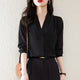 Lace Up Bow Blouse Women Colorblock Button Shirt Long Sleeve Top