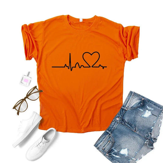Women’s Heart Print Valentine’s Day T-Shirt Casual Short Sleeve