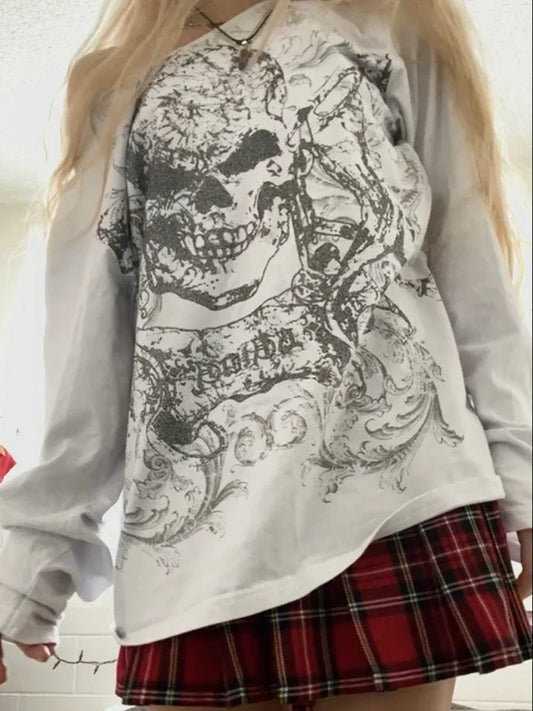 Women’s Grunge Skull Print Off-Shoulder Halloween Loose Pullover