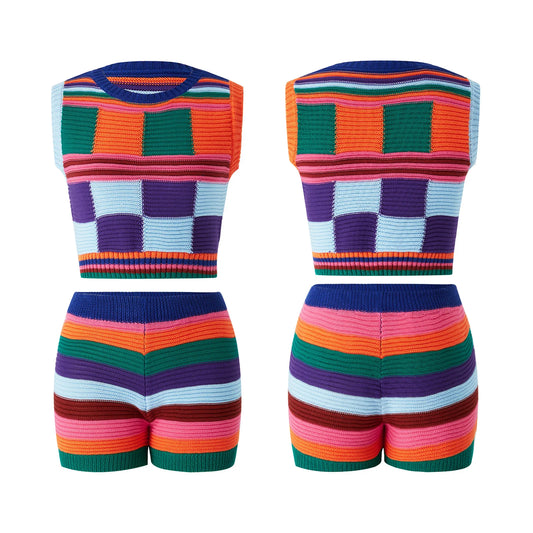 Women’s Y2K Knit 2 Piece Set Sleeveless Vest & Shorts Summer Outfit