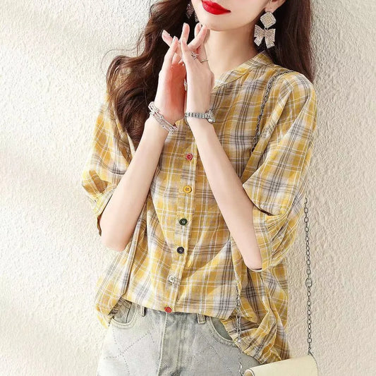 Woman Summer Style Blouses Tops Lady Casual V-Neck Short Sleeve Striped