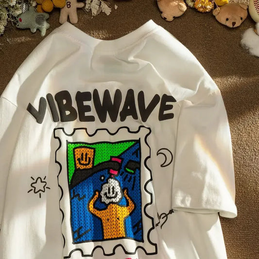2024 American Retro Letter Print T-Shirt Vintage Ghosting Vibes