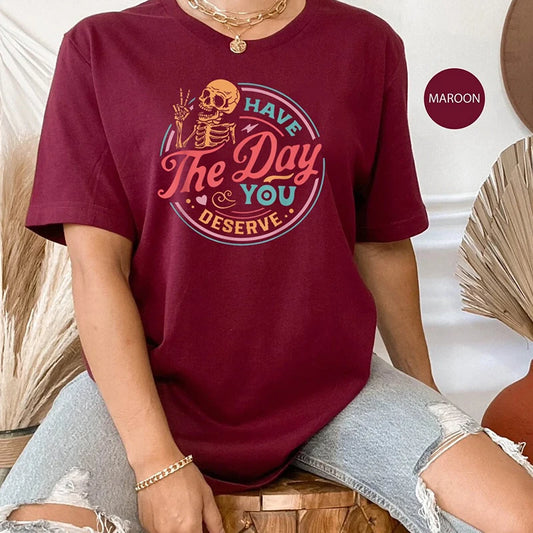Women 'Have The Day You Deserve' Skeleton Graphic T-Shirt