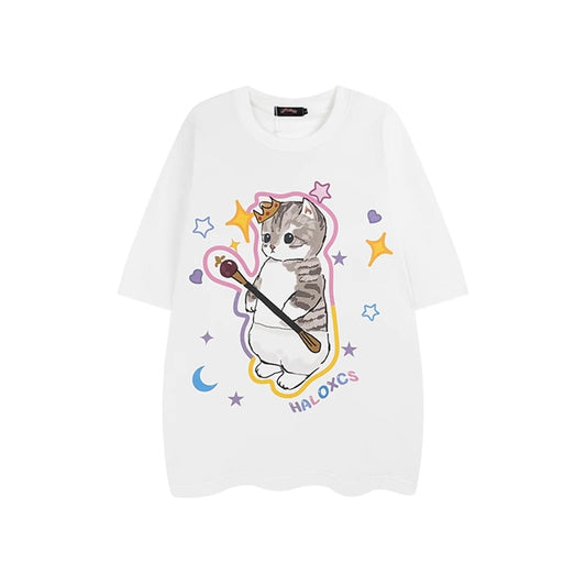 Harajuku T-Shirt Women's Streetwear Graphic Dinoasurus Cat