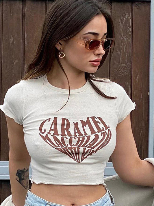 Women T-Shirt Short Sleeve O Neck Loose Flower Heart Print